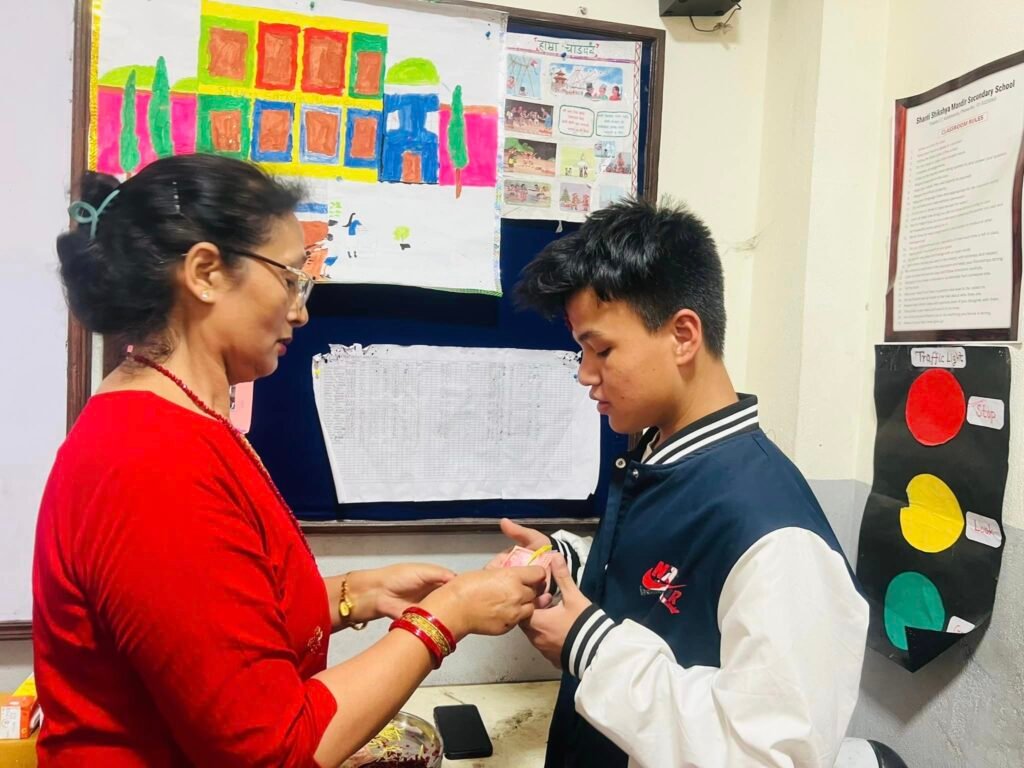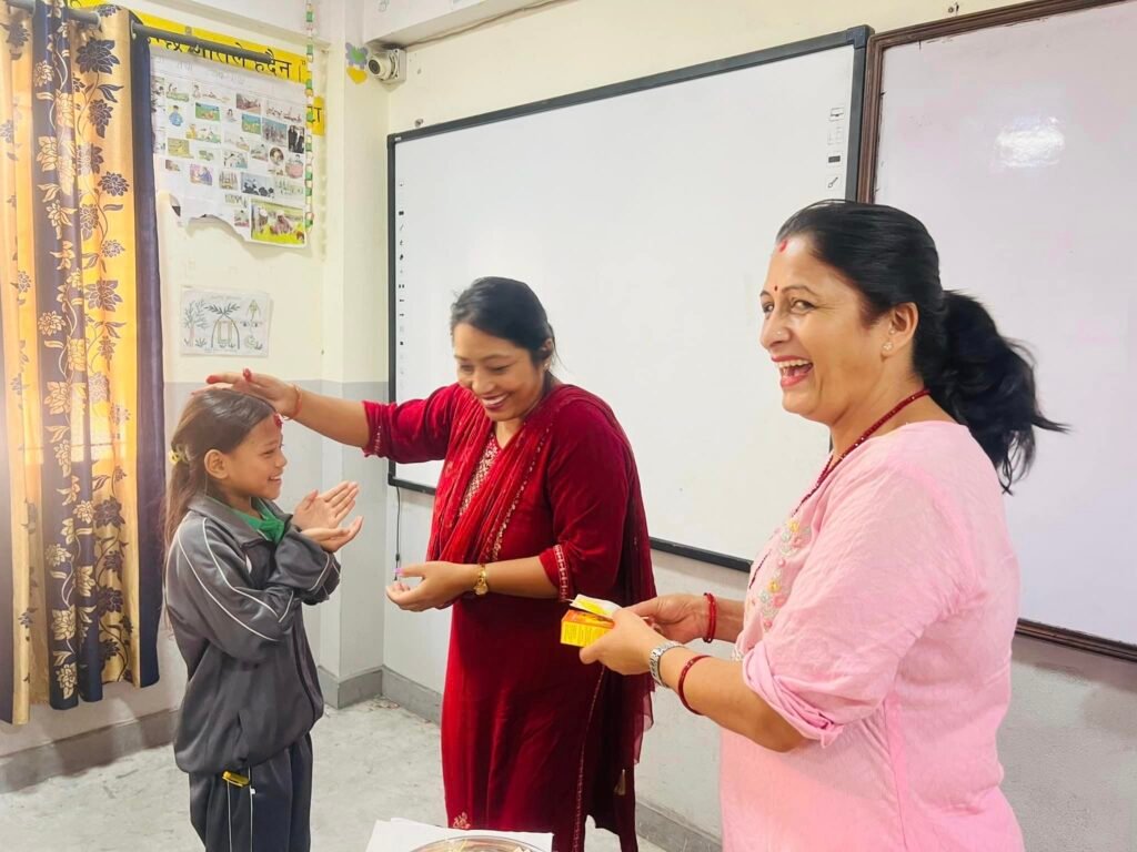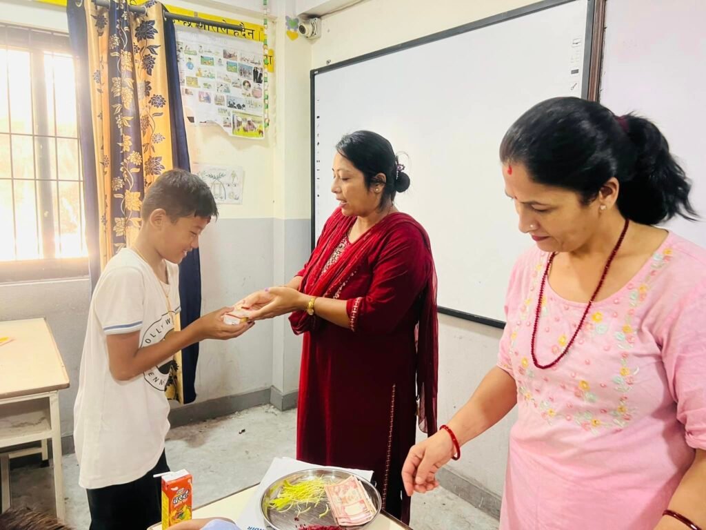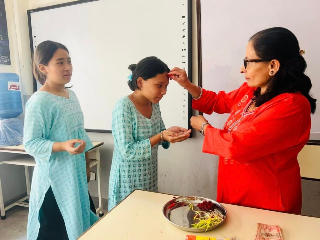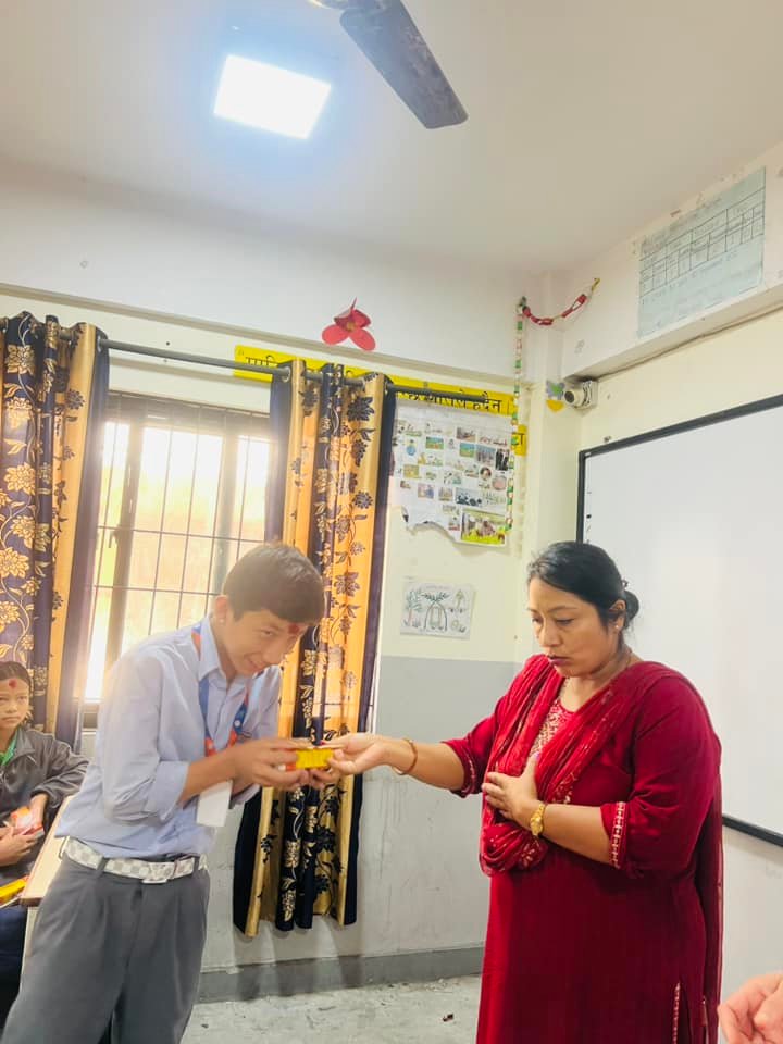 शान्ति शिक्षा मन्दिरको तर्फबाट दशैं, तिहार, नेपाल सम्बत र छठ पर्वको पूर्वसन्ध्यामा विद्यालयको अन्तिम दिनमा हाम्रा सम्पूर्ण विद्यार्थीहरूलाई टीका, जमरा र दक्षिणासहित हार्दिक शुभकामना व्यक्त गरियो। यस पर्वले सबैमा सुख, शान्ति र समृद्धि ल्याओस् भन्ने कामना गर्दछौं। सबैले रमाइलो र सुरक्षापूर्वक चाडपर्व मनाउनुहोस्